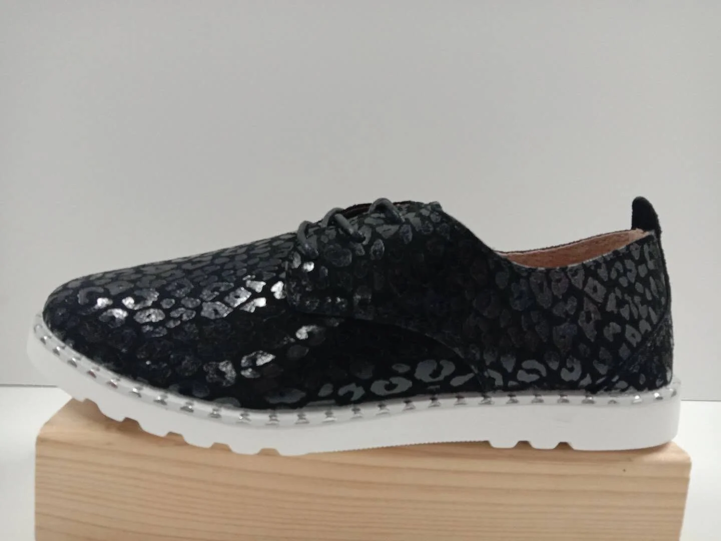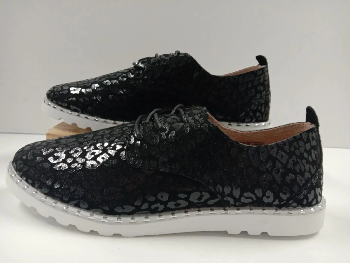 The perfect trans-seasonal shoe! Corinne by Just Bee features a laser cut leather upper and lace up closure, these flats can be worn in the cold weather and perfect for when the weather starts to warm up.