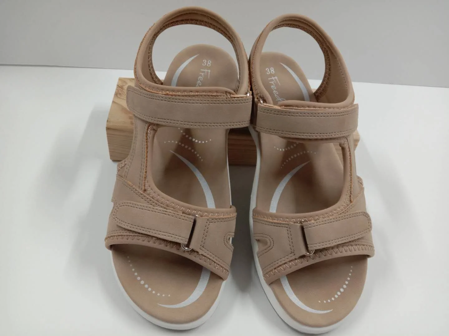 Put your feet first with the Freedom Sports style CARLY in BEIGE. These Summer sandals are crafted from Soft faux-leather material with double edge stitching on the upper straps. The ankle strap is Velcro adjustablet with a super padded flexi rubber sole for extra comfort. Your feet will be in heaven all day!